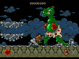Overview Chuck Rock is about a dirty old caveman called Chuck Rock, who embarks on a wonderful, yet dangerous journey to save his wife, Ophelia who was just recently captured by another dirty man, Gary Gritter. This game is exciting, colourful and prehistorically mad! Gameplay Gameplay is very general. You try and make to the other side of the level without dying. Along each level, include wierd monsters, dinosaurs and harmful organisms, like slime and prickles. Chuck Rock's arsenal of moves include picking up rocks for protection or for chucking, jumping, kicking in mid air and by far the most interesting, bellying! And certainly bellying enemies is fun! But it would have been nice to have several prehistoric weapons. Level after level it gets way harder! After level 5, the place seems to be cluttered with monters, and just bellying around won't do. So the game is very fun, just far too difficult (for me anyway!) 7 out of 10 Graphics This is the absolute strongest point in Chuck Rock, because the graphics so wonderfully detailed, colourful and very cartoonish. The animations are lively while still maintaining an incredibly fast and smooth framerate. 5 out of 5 Sound Excellent music tunes and it really suits the prehistoric theme. The sound effects are cartoony but it seems as if there isn't enough of it. There aren't any monster or dinosaur grunts. There really should have been sound effects for Chuck landing after his jumps, because this game does involve alot of jumping. 4 out of 5 Game Design It starts of nice and easy, but after the fifth level, it gets way hard! Once you die, you're back to square one on that level and that's too bad, because it's already hard enough to make past level 5. This is a challenging game indeed. It would've been much better if could carry on from where you died or have some sort of checkpoint. Most levels do require some srategy to pass it, such as using animals and dinosaurs to assist you and using rocks for protection. The startup screen is a real bonus. You get to see Chuck Rock's rock band, playing their awesome Chuck Rock tune. Awesome! 3.5 out of 5 Longevity With this game being so hard, and without any save option, you'll always come back for more to figure out ways to finish levels faster, by knowing where monsters are, where the energy replenishing hearts are and how to use the rocks. 3.5 out of 5 For: Very fun, easy controls, cool startup screen, superb music and graphics, good use of colours and weird monsters Against: Too hard to clock in one go and not many good sound effects Storyline (external) Seeing the intro is not shown in the Genesis version, this is how it goes: Chuck Rock is at home naked, drinking beer and watching the daily news on his TV set with a bird acting like an aerial! (of course no TV's existed back in the BC) Chuck's wife Ophelia is outside hanging up the washing. Gary Gritter hiding in the bushes, sneaks up behind Ophelia, knocks her out with a club and carrys her away. Chuck hears the incident, goes outside naked and find that Ophelia is gone! His clothes are still in the wash and a little pterosaur tells Chuck "He went that way!" Embarrassed, he wraps his private bits up with some bush and off he goes to save Ophelia! Why couldn't Chuck put on his own clothes of the washing line, or is he a daily nude freak? Why on earth would Gary Gritter want Ophelia when there are millions of other unmarried girls? Does Chuck Rock have any past history with Gary Gritter? All is unanswered, so you're left with you in control of Chuck Rock and not knowing what the hell you're doing during the game, because none of the plot is resolved during the game. Seeing this game was only meant to be sort of like a cartoon, I do suppose the storyline is OK! 3 out of 5 |
