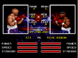 Platform: Sega Genesis Genre: Sports, Boxing Producer: Sega Year: 1993 Runs on: Genecyst and Kgen98 with Raster Effects Scoring Summary Gameplay and Realism: 7.75 out of 10 Graphics: 3 out of 5 Sound and Music: 4.5 out of 5 Playability and Versatility: 2.75 out of 5 Options: 3.5 out of 5 Total: 21.5 out of 30 Overall: 72% ~Reviewed by Twirl |