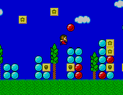 Overview Alex Kidd in Miracle World was one of Sega's most popular games at the time of the Sega Master System. It was so popular in fact, that it was built into every single Sega Master System 2 machine, which meant no cartridge was needed. You just turn you Sega Master System 2 on and up comes Alex Kidd! Storyline Alex Kidd is about a prince who is a kid called Alex Kidd. His people of the nation "Radaxian" has been turned into stone by the bad man Janken the Great who has also captured the Princess of Radaxian. Alex Kidd now must venture through Miracle World, with his martial arts skills to find Janken the Great, stop him, rescue the Princess and restore his people of Radaxian who were turned into stone back to normal. However Alex Kidd's father is missing... Gameplay The objective of the game is to make it to the other side of the level to the level's exit. Along each level, you try to collect as much money possible. The gameplay is quite general at first, but soon you find more fun as you progress, because Alex Kidd can travel by land, sea and air! Alex Kidd can use his big fist for punching bricks and monsters, and jump extremely high. He can swim when he enters the water. Also to help him along the way, he can stop by at the local stores to buy motorbikes; for speed and power, or helicopters to power his way across the air! And finally, Alex Kidd can travel by speedboat on a level! All is fun, then made even more fun when you can buy or punch open bricks to get special items such as rings that shoot and shields. When you reaches big bosses, instead of fighting them, you have janken matches, then you fight! Interesting. 9 out of 10 Graphics This game is so colourful! All colours are used appropriately. The grass is green, sea and air are blue. There's pretty graphics galore all over the screen. Even nice little sparkles in water levels. 5 out of 5 Sound The music is awesome! The moment you enter the startup screen, you're greeted with the wonderful and delightful Alex Kidd theme. The underwater tune is fantastic! The sound effects are very funny and suits the excellent music. 5 out of 5 Game Design Every level is greatly varied, especially on the last level inside the castle, where you have to figure out ways of making it to the end and choice of multiple paths. And levels where you use motorbikes, helicopters and speedboats are maybe too challenging, but when you mess up, you can still carry on using Alex Kidd on land or sea. 4.5 out of 5 Replayability The game is challenging, but with it being so long and without a save system, you'll find yourself back to square 1, level 1 after you gameover It would have been perfect to have level passwords. A real problem here is that one touch of a monster, then you die. At least you don't go back to the beginning. 3.5 out of 5 For: Excellent levels, good variety of gameplay, fantastic music, funny sound effects, good storyline, cool janken matches and challenging for all. Against: No save system, no level passwords, hard to clock, and you can die after losing your janken matches. Other Information The sequel to Alex Kidd in Miracle World won't be found on the other Master System Alex Kidd games, but on the Sega Genesis; Alex Kidd and the Enchanted Castle. |