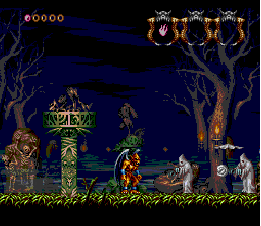 Created by Capcom. Demon's crest is a game related to Gargoyle's quest on the gameboy which features Firebrand. Firebrand returns in this game but for some strange reason few call this a sequel. Whatever the case is, if you are a Megaman or Megaman X fan but want a dark and gothic game you will love this. Regardless of the fact that many of the ideas were borrowed from Megaman, I think it should be a classic. You also get potions and spells along with Talisman's which do various things like increase the damage you deal or decrease the damage depending on which talisman you choose. While the ideas are great, you do get annoyed by the low jumps, inability to crouch and to fly upwards. Also having to switch back and forth between forms to complete such tasks is just annoying to no end. Graphics: 5/5 While not exactly containing high end 3-D graphics like Killer Instinct or Donkey Kong Country what Demon's Crest has is detail and very scary looking backgrounds and monsters. Seriously, you can count the number of bones on an enemy skeleton and see the rivuets of slime on a slime monster. Everything is monstrous and there are no "cute" things like in other games to lighten the dark brooding graphics. Sound and Music: 5/5 The score for this is very old and you have a lot of organ playing. Long sonorous notes and depressing. Very fitting to the atmosphere of the game especially when you are in the castles and dungeons. Game design: 3/5 Like Megaman, this game is tough, very tough and while the levels are relatively short, you find yourself having to return to find that one power-up you missed which is actually hidden in another area you have never seen before. Thankfully all the locations are different and the artwork fabulous to keep your moral up. You can not actually save, rather you are given a password which requires you to fill in 16 squares, just like Megaman. This is very annoying. Perhaps one of the downpoints (or up points if you like a challenge) is that to see the best ending you have to collect all the power-ups. As a bonus however for doing this you do get a seventh crest turning you into the Ultimate Gargoyle. Longevity: 4/5 Because of the several different endings and so many hidden areas. You will probably be playing this for a long time to come. Of course, it requires a huge dose of patience if you are new to the scene but if you've lived through the whole of the Megaman series, the Marvel series and the Ghouls and ghosts series this should be no different. For: Ability to change form and become different. Good plot. Great graphics. Scary music Against: Can not crouch. Requires a lot of patience. High difficulty level. |